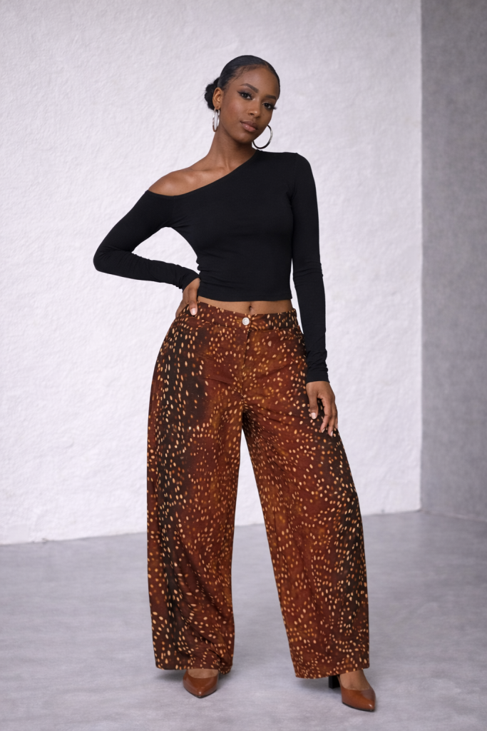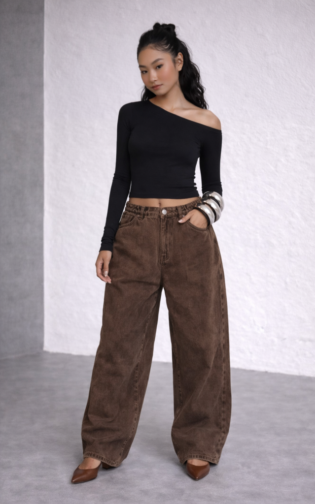 Color is another key shift. Alongside classic blue denim, warm browns, soft neutrals, and earthy tones are becoming staples. These shades make low-rise wide-leg jeans easier to style beyond casual settings, allowing them to move effortlessly from day to night. Patterned or textured denim works especially well when balanced with simple silhouettes on top, letting the jeans remain the focal point.